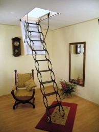 Складные чердачные лестницы позволяют обустроить выход на мансардный этаж или чердак без установки стационарных конструкций. Данные механизмы выпускают деревянными и металлическими. По принципу вкладывания они бывают телескопическими (раздвижными) или складными. Некоторые модели могут иметь дополнительно установленную систему автоматического складывания конструкции. Более простые – складные чердачные лестницы с ручным управлением.